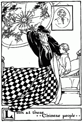“Đêm nay ta không có thì giờ đâu,” ông đáp, giương chiếc dù xinh đẹp nhất che cho cậu bé. “Hãy ngắm những người Trung Hoa này xem.” Và ngay lập tức, cả chiếc dù bỗng biến thành một chiếc bát sứ khổng lồ, in hình những cây cổ thụ và những chiếc cầu cong vút, trên đó lũ tiểu nhân Trung Hoa đang gật gù chào nhau.